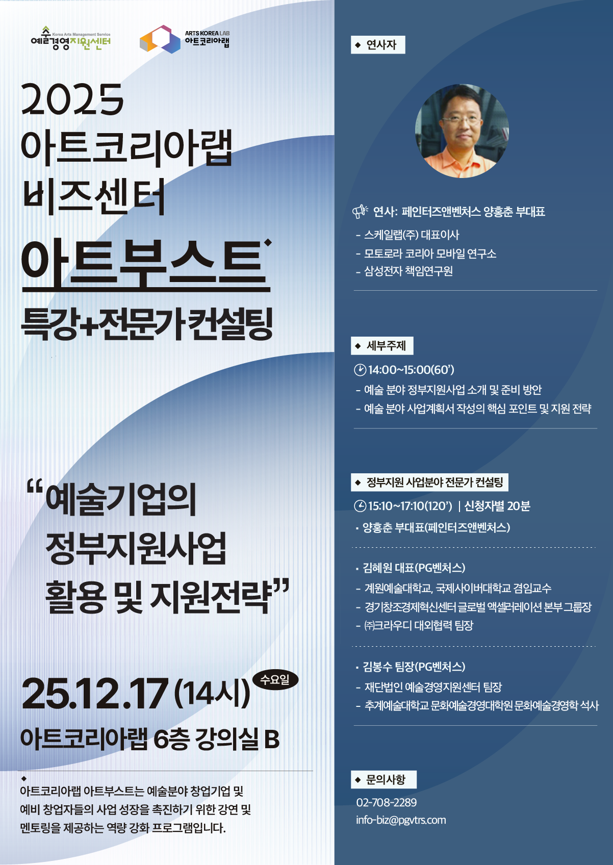 - 주제: 예술기업의 정부지원사업 활용 및 지원전략